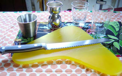 Other tools making a successful bar are: small cutting board and a serrated knife (makes cutting the citrus that much easier), various shot glasses (I have two nice vintage ones I use all the time that measures different ounces and give TBS. and tps. conversions on the sides), A cocktail spoon (extra long handle with a small scoop for hand blending certain drinks that do not require a shaker), Bottle/Wine Bottle opener,