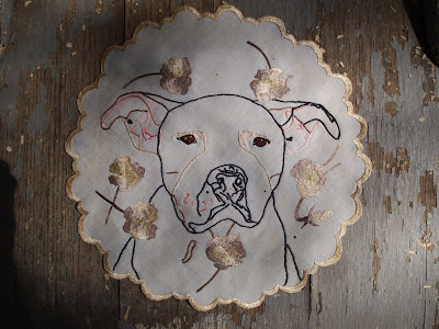 I'm in love with embroidery on hankies and Lucy Pearl by Spotted Dog Farms is just too sweet. It reminds me of my old dog Millie.