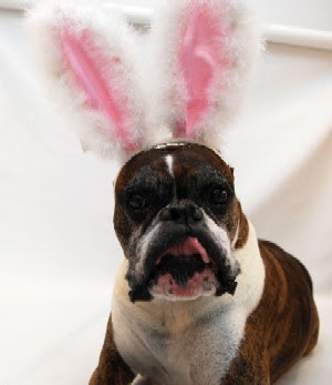 Happy Easter Everyone! I hope your day is filled with yummy Easter candy. Don't forget to eat the ears off that chocolate bunny! I had a plan to get little bunny ears and put them on the pups but have you ever tried to hold a Jack Russell or Min Pin down? No, well let's just say that hell hath no fury like a Jack Russell in rabbit ears. So, instead of my three monsters, I bring you a calmer, sweeter Easter pup(and cat!)