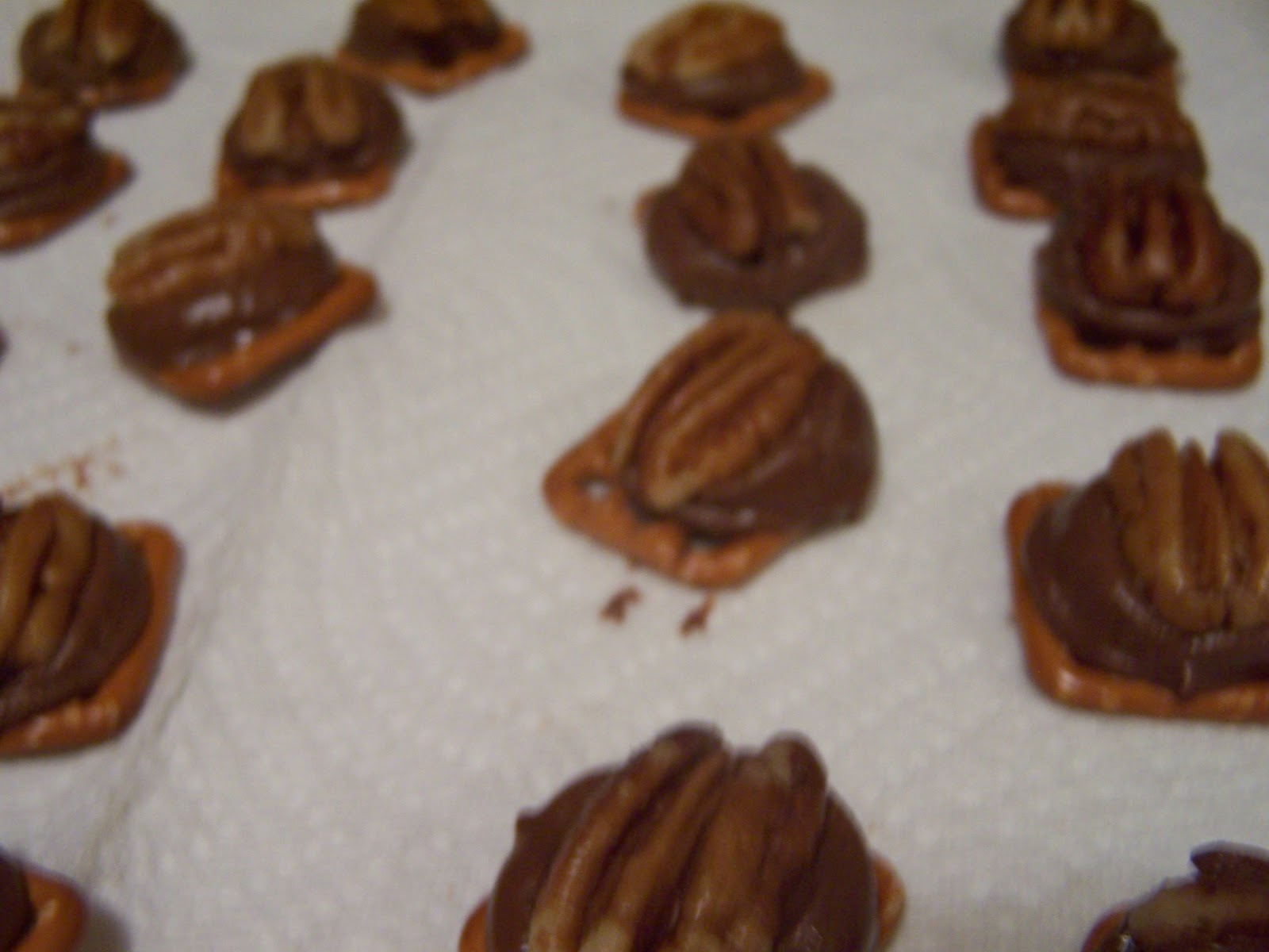 On a cookie sheet, lay out pretzels. Make sure you are just doing one row, don't stack!