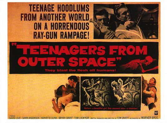 This next little gem combines two of the worst things in the entire universe. Teenagers and alien invasions (insert scream here). Teenagers from Outerspace is a delightful little romp showing that our youth of today really can make a difference. They save their small town from the horrible teenage space aliens, who, by the way, want to feed us to their monster lobster pet! One of the alien invaders loves our country and our planet so much that he decides to help us and eventually wants to stay in the good ol' US of A.