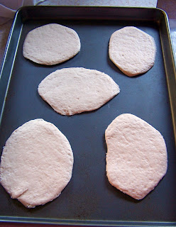 Take a can of biscuits and roll them out flat, next cook them according to the directions on the can. You can make homemade biscuits, but I wanted to eat now and didn't have time to make up the biscuits.