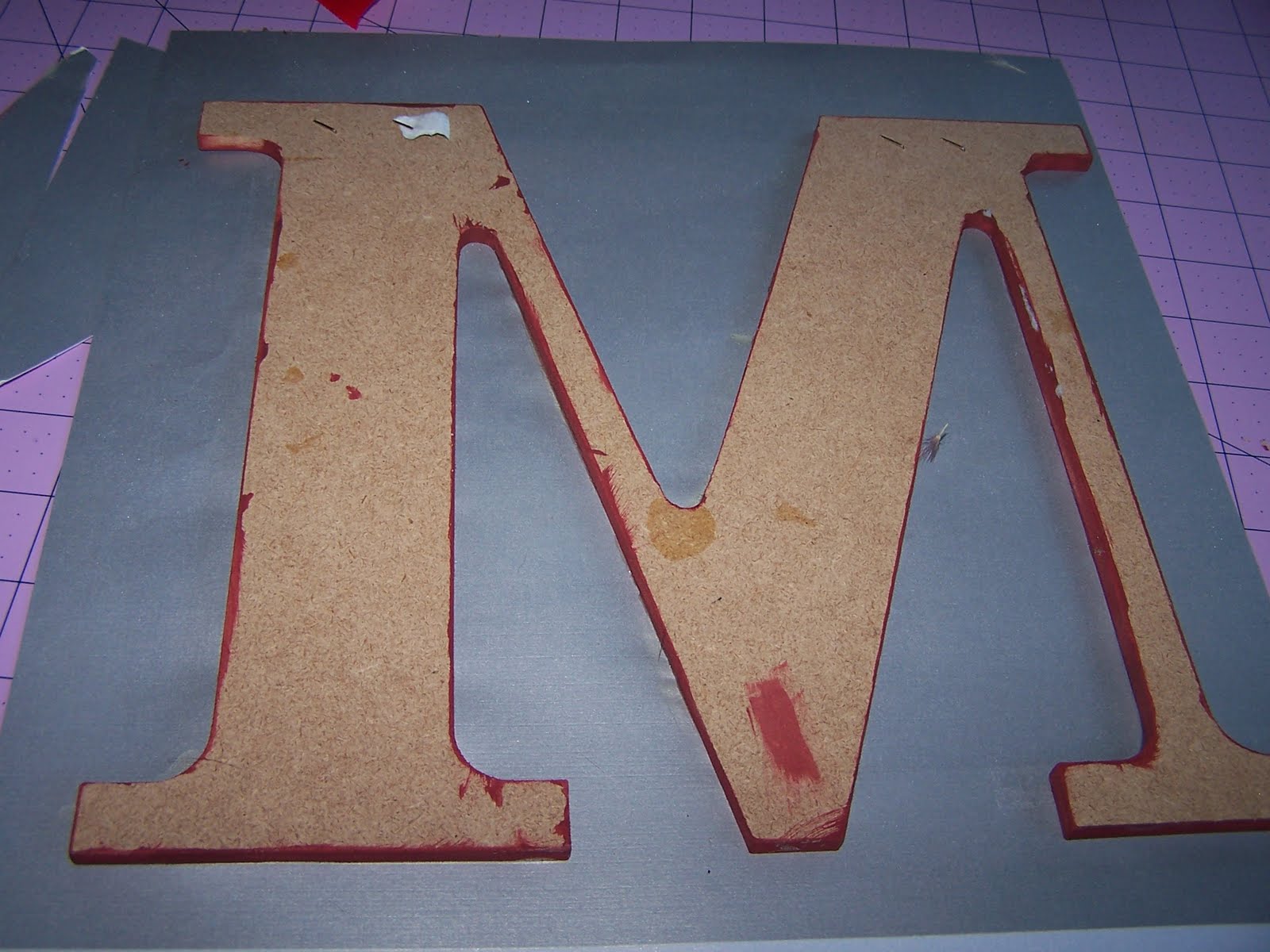 I found these letters at Michaels for 1.49 each. They are pressed wood and about 12 inches tall. I painted the edges and used scrap book paper for the front. I'm sure you could use fabric or any other paper if you wanted to.